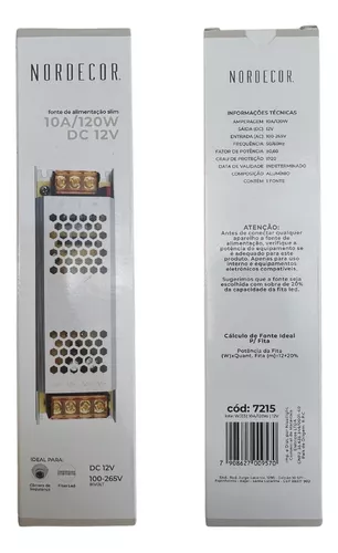 Observação Sugerimos que a fonte seja escolhida com sobra de 20% da capacidade da fita led.