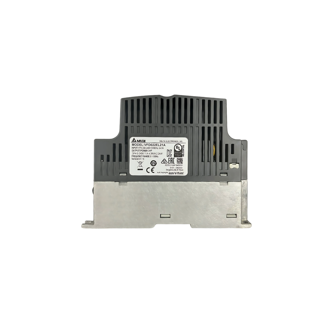 A série VFD-EL de microdrives CE é a nova geração de drives da Delta. A série acompanha filtro EMI integrado (modelos 220V 1F e 380/460V 3F), que permite a fácil desconexão em caso de rede não aterrada (IT), permite a regeneração de energia de frenagem entre diversos inversores montados paralelamente pois possui fácil acesso ao barramento CC, acompanha o protocolo MODBUS via RS485, e pode utilizar outros protocolos por meio de expansões. Possui também teclado integrado no inversor.